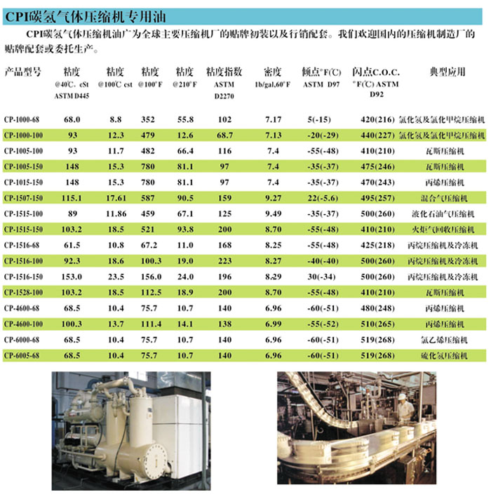 空氣壓縮機用的應用而生,其目的是為了減少由于外力作用下兩個以上機械設備帶來的摩擦,減少摩擦增加潤滑,就可以使機器設備提高壽命,從而減輕生產成本,提高它的利用率。深圳華萊實業有限公司所進口的CPI潤滑冷凍油,率先搶占市場先機,制成合成冷凍油。