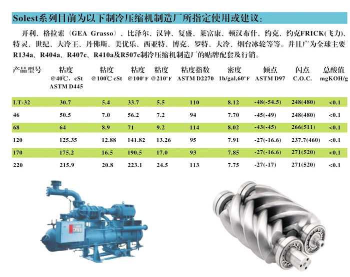 制冷壓縮機(jī)的轉(zhuǎn)速比越高,應(yīng)用冷凍機(jī)油的黏度應(yīng)越大,實際上應(yīng)用中通常低速檔立柱式雙缸制冷壓縮機(jī)可應(yīng)用美國CPI冷凍油系列,中速和髙速多缸制冷壓縮機(jī)應(yīng)應(yīng)用CPI-4214-320號,一些髙速重載制冷壓縮機(jī)的熱值大,油溫高,氣溫也高,XX好是應(yīng)用CPI-4214-320號冷凍油。